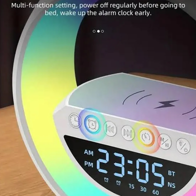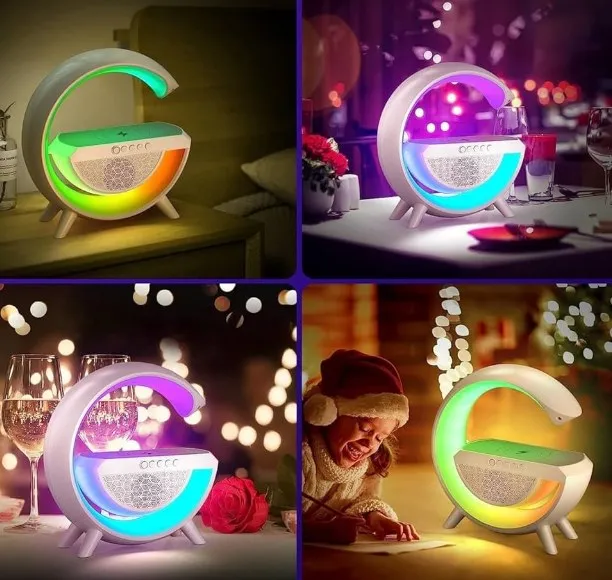 G Shape Google LED Wireless Charging RGB Bluetooth Speaker Clock and Rechargeable Table Lamp